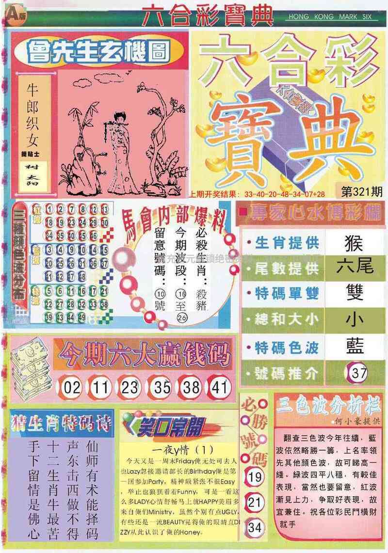 | 321期:澳门六合彩寶典解特开(羊23) 大赢钱码:02.11.23.35.38.41 |